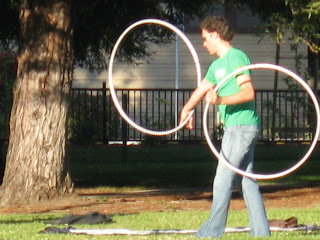 I was visiting Mitchel Park in San Luis Obispo CA when 2 hoopers showed up. I grabbed a few photos. I was depressed that I didn't have my hoop with me. I came by train and had to limit what I brought to what I could carry by myself. If only I had a collapsible hoop. I asked the hoopers if they had regular meetings or if I could come back the next day with a hoop and she said they more or less just show up on a whim. Oh well. It was kind of demoralizing when I walked up to say hello and a little girl there said, "Are you their mother."